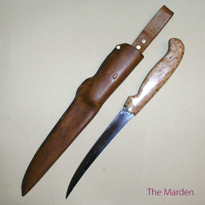 Handle: Curly Birch with brass bolster. Treated with CCL oil and Carnauba wax then highly polished. Not dishwasher proof.